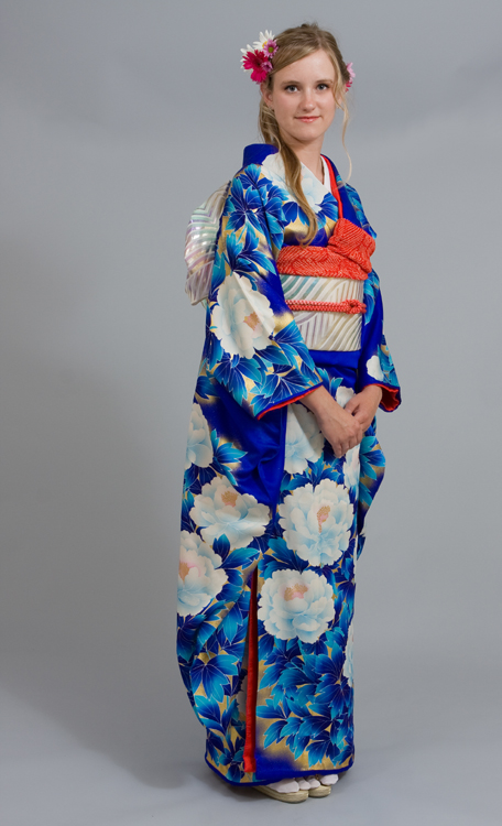 Kimono rental includes: kimono-lingerie, tabi socks, zori- shoes, bag, and obi- belt.